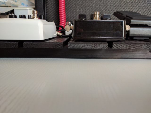 Pedaltrainみたいに横に板を組み付けてもいいんですが、木材なのでちょっと長くなると耐久性が心配。横板を増やすのも億劫なのでこういう作りになりました。