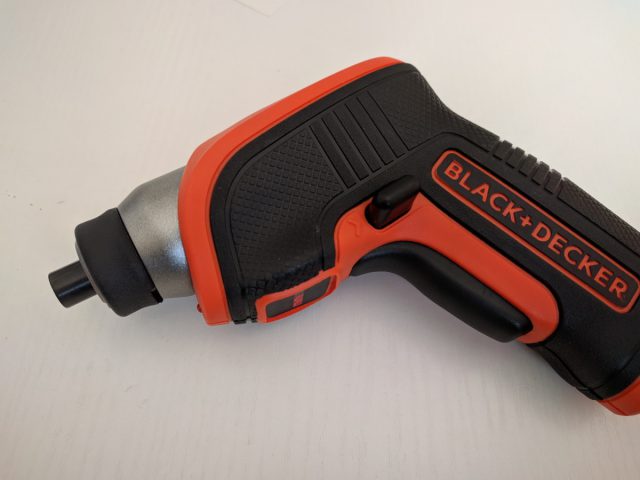 愛用の電動ドリルです。3,980円くらいの充電式。コードが無いので作業が楽。あとはパワーも控えめなので、ネックからボディから細めの木ネジも安心です。