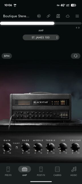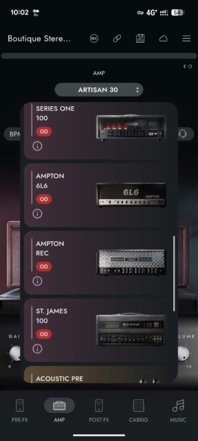 とりあえずBEAM SOLOのアンプモデルから紹介しますが、クリーン・クランチ・ODでそれぞれ4機種ずつしかありませんので、ライバル社と比べてもめちゃくちゃ少ないです。ただBlackstarのメリットは自社アンプを搭載しているってとこ。ISFもあるので、よくわからない使えないアンプが入っているよりはよっぽどいいはず。